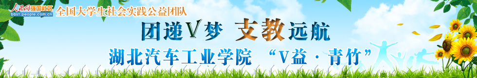 “V益·青竹”支教團(tuán)隊(duì)由9名本科生組成。他們利用兩周暑假時(shí)間到湖北省竹溪縣蔣家堰鎮(zhèn)中原小學(xué),開展以“團(tuán)遞V夢(mèng) 支教遠(yuǎn)航”的主題的實(shí)踐活動(dòng)。自7月9日開始,從“一米陽(yáng)光暖庸巴”主題愛心募捐和義賣、“支教路上共成長(zhǎng)”主題支教、“我的V夢(mèng)想”主題畫展暨文藝匯演、和“團(tuán)遞V夢(mèng) 支教遠(yuǎn)航”主題宣講等四個(gè)方面開展實(shí)踐活動(dòng)。團(tuán)隊(duì)已經(jīng)在六堰廣場(chǎng)舉行了“一米陽(yáng)光暖庸巴”報(bào)紙義賣和愛心募捐活動(dòng),將籌集到的善款和物資捐贈(zèng)給中原小學(xué)。支教課堂上,志愿者們教授孩子們英語(yǔ)、華爾茲、電子琴、繪畫等課程,開設(shè)班級(jí)也由計(jì)劃中的一個(gè)班擴(kuò)展到三個(gè)班。