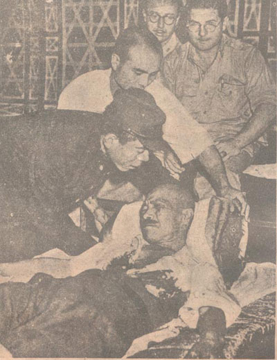 1945年8月,日本無條件投降后不久,東條英機自知罪責難逃,舉槍自殺。圖示他中彈獲救時之痛苦情狀。作為頭號戰(zhàn)犯,他在獲救后仍被送上絞刑架。三絞廢命。