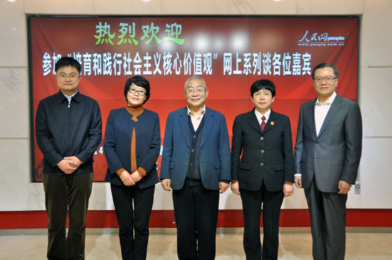16日上午,北京市房山區(qū)委常委、宣傳部部長趙佳琛,中國人民大學(xué)新聞學(xué)院黨委副書記羅建暉,國家電網(wǎng)公司思想政治工作部副主任方國元,北京市海淀區(qū)人民法院副院長宋魚水,中國倫理學(xué)會名譽(yù)會長、中國社科院研究員陳瑛作為第一場訪談的嘉賓,在人民網(wǎng)強(qiáng)國論壇與網(wǎng)友進(jìn)行在線交流。