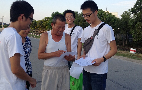 湖北大學(xué)“未來力量”暑期社會實踐團隊是人民網(wǎng)強國社區(qū)“綠色新生力”全國大學(xué)生環(huán)保公益項目大賽的參賽團隊之一,與眾多參賽團隊一樣,他們緊扣環(huán)保主題開展暑期實踐,并在大學(xué)生論壇實時播報活動進(jìn)展和記錄心得體會。團隊通訊員在活動結(jié)束后寫下自己的感受:“苦盡甘來,我們得到了我們想要的,也有了豐富的收獲。這些日子一起走過,我們曾頂著太陽的暴曬,在馬路上不停的奔跑;也曾在瓢潑的大雨中相互撐傘遮擋;也圍坐在桌子旁邊一起吃著工作餐,開心地談天說地。每一個畫面,都如此珍貴。一路上,我們收獲知識,也收獲感動;收獲歡笑,也收獲回憶。將近十天的時間,我們齊心協(xié)力,用自己的努力,畫上完美句點!保▽嵙(xí)生 陳晨)