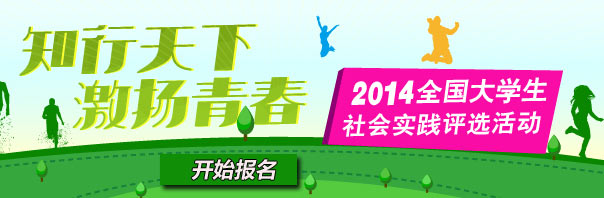 以學習宣傳習近平總書記2014年“五四講話”精神為契機,以引導青年學生培育和踐行社會主義核心價值觀為重點,引導廣大青年學生深入社會、了解國情、接受鍛煉,堅定為實現中國夢努力奮斗的理想信念,人民網將舉辦“2014全國大學生社會實踐評選”活動。本活動以“知行天下,激揚青春”為主題,面向全國大學生征集暑期社會實踐成果報告,通過展示和評選的過程,對內容充實、成果突出、事跡典型的團隊或個人進行宣傳和表彰。