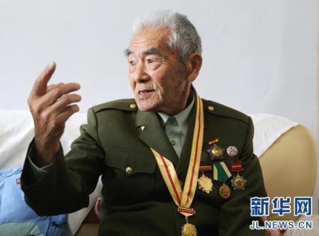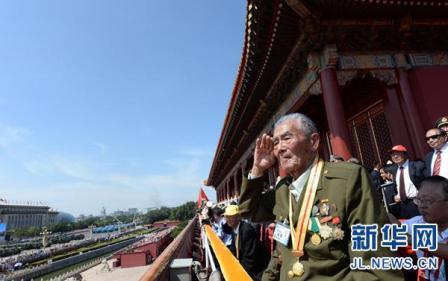 新華網(wǎng)長春10月17日電(記者 田甜)9月3日,紀念中國人民抗日戰(zhàn)爭暨世界反法西斯戰(zhàn)爭勝利70周年大會在北京舉行。在那場盛大的閱兵式上,一位抗戰(zhàn)老兵在天安門城樓上向受閱部隊全程起立敬軍禮的一幕,戳中了很多人的淚點,無數(shù)人為之動容。近日,記者隨“尋找歷史記憶 緬懷抗戰(zhàn)英烈”采訪團來到這位“敬禮老兵“史保東老人的家中,探訪昔日戰(zhàn)場上的這位鐵血戰(zhàn)士,回憶那段激情燃燒的抗戰(zhàn)歲月。