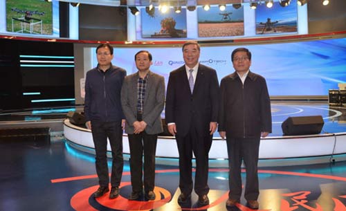 (從左至右)國資委新聞中心副主任蘇桂鋒、人民網(wǎng)總編輯余清楚、中國建筑材料集團董事長宋志平、國家網(wǎng)信辦網(wǎng)絡新聞信息傳播局副局長侯云灝