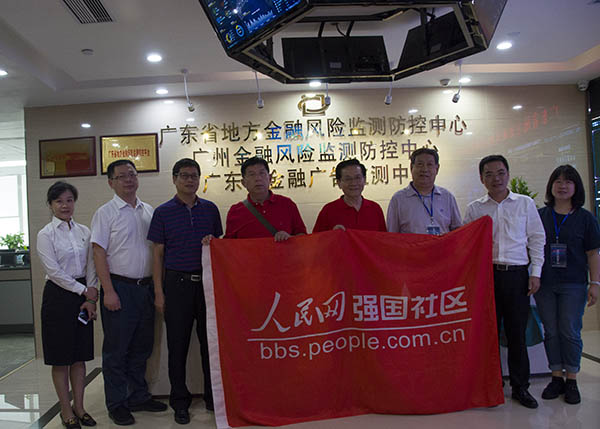 調(diào)研組一行在廣州市金融風(fēng)險監(jiān)測防控中心交流調(diào)研后留影。(人民網(wǎng)記者 耿寬謀 攝)