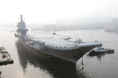 2018年5月13日,我國第二艘航母從大連造船廠碼頭啟航,赴相關海域執(zhí)行海上試驗任務(圖片來源:新華社)