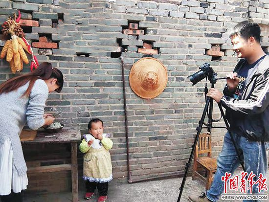 高玉樓從公司白領(lǐng)回到麗江榮將鎮(zhèn)創(chuàng)業(yè)賣(mài)芒果,為家人拍攝視頻。(中國(guó)青年報(bào))