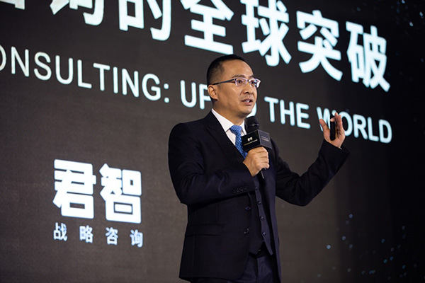 君智戰(zhàn)略咨詢董事長(zhǎng)謝偉山發(fā)表“中國(guó)戰(zhàn)略咨詢的全球突破”演講