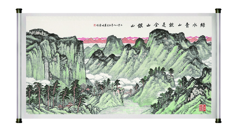 黨的十九大報告指出,人與自然是生命共同體。綠水青山就是金山銀山不僅是一種理念,更要把它變成實踐,成為推進中國生態(tài)文明建設的指導思想,推動形成人與自然和諧發(fā)展的現(xiàn)代化建設新格局。該系列發(fā)于此意。此畫為人民網(wǎng)邀著名畫家創(chuàng)作,素雅大氣,意蘊橫生。