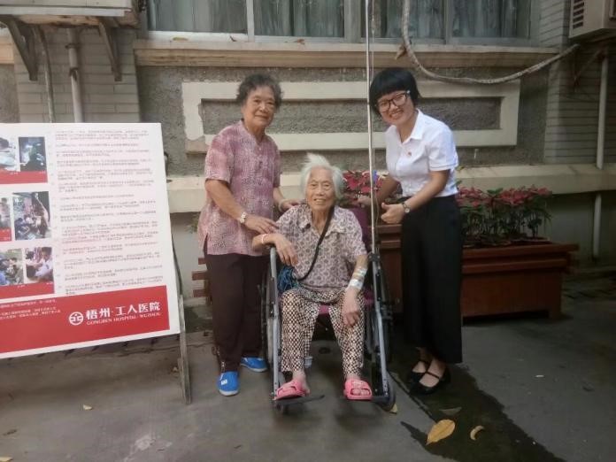 “孩子,我不能在福利院住了,我沒有地方去了!秉S奶奶抹著眼淚說。原來黃奶奶年事已高,需要親屬作為擔(dān)保人與社會福利院簽訂入院協(xié)議才能入住。但黃奶奶與孩子的關(guān)系并不好——在梧州生活的大兒子不愿照顧黃奶奶,也不愿為黃奶奶簽訂入院協(xié)議;小兒子則遠(yuǎn)在上海,常年不回梧州。因此,黃奶奶無法辦理合法合規(guī)的社會福利院入住手續(xù)。