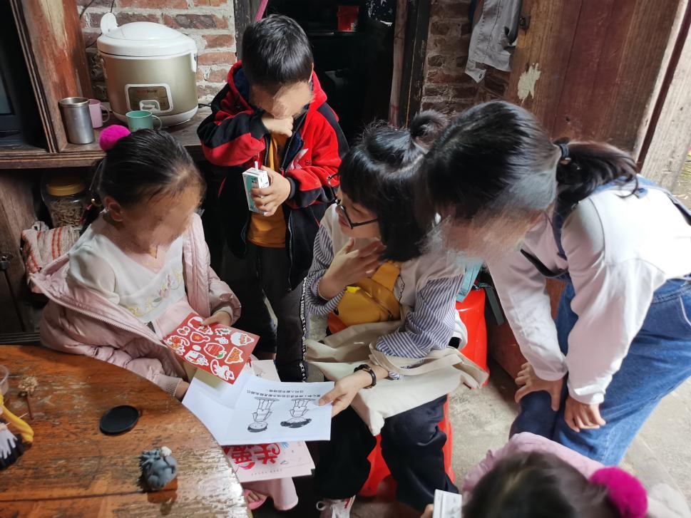 韋金雨探望受援人子女。司法部供圖