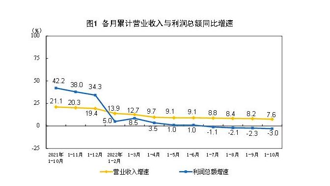 國家統(tǒng)計局?jǐn)?shù)據(jù)顯示,今年前10個月,全國規(guī)模以上工業(yè)企業(yè)營業(yè)收入同比增長7.6%,利潤同比下降3%。國家統(tǒng)計局工業(yè)司高級統(tǒng)計師朱虹解讀工業(yè)企業(yè)利潤數(shù)據(jù)時表示,總體看,工業(yè)企業(yè)利潤下降,結(jié)構(gòu)繼續(xù)改善,部分中下游行業(yè)利潤回升明顯。但也要看到,近期國內(nèi)疫情散發(fā)多發(fā),世界經(jīng)濟(jì)衰退風(fēng)險加劇,工業(yè)企業(yè)效益恢復(fù)面臨較大壓力。