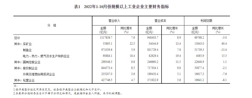 2022年1-10月規(guī)模以上工業(yè)企業(yè)主要財務(wù)指標(biāo)。 國家統(tǒng)計局官網(wǎng)截圖