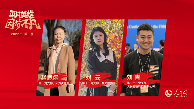 經(jīng)過入圍候選人在線上的精彩展示角逐,根據(jù)人民網(wǎng)黨委和管理層成員,黨支部書記、部門負責(zé)人代表,以及黨支部委員、黨員和群眾代表等30位評委現(xiàn)場打分,最終,來自第一黨支部、人力資源部的人事專員趙思函,第十三黨支部、社交媒體部短視頻組主編劉云,第二十一黨支部、人民視聽子公司視頻總監(jiān)劉青三位同志分別榮獲人民網(wǎng)2022年度第二季“平凡英雄”服務(wù)獎、創(chuàng)新獎和奮斗獎。同時,杜明明、燕帥、景玥、許維娜、楊伊、陳思、王亞微等七位同志獲得“平凡英雄”入圍獎。