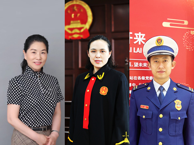 從左到右依次為全國最美信訪干部、北京市豐臺區(qū)信訪辦公室二級巡視員王凱,北京市朝陽區(qū)人民法院南磨房人民法庭副庭長、四級高級法官付艷,北京市朝陽區(qū)消防救援支隊奧林匹克公園特勤站副指導(dǎo)員、三級指揮員仇志宏