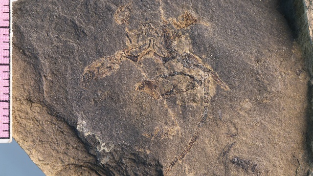 “2015年的一次普通野外踏勘工作中,我的學(xué)生代旭在一塊黑色頁(yè)巖上發(fā)現(xiàn)了一枚非常奇特的化石碎片!彼魏\娊榻B,后來(lái)經(jīng)鑒定這枚化石是在早三疊世海相地層中罕見(jiàn)的龍蝦化石碎片。